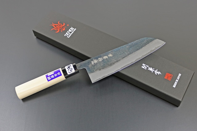 昔ながらの製法「火づくり」で鍛造する技術をもつ職人は年々少なくなっており、わずかしかいない貴重な存在です。そんな中でその伝統技術を継承し、次世代に繋いでいこうとする若き職人が一本一本に命を吹き込んだ包丁です。 鋼材 日立安来鋼 青紙2号(割込) 柄材 朴の木(天然木)/プラスチック ■全長:約310mm 刃長:165mm ■重量:約120g