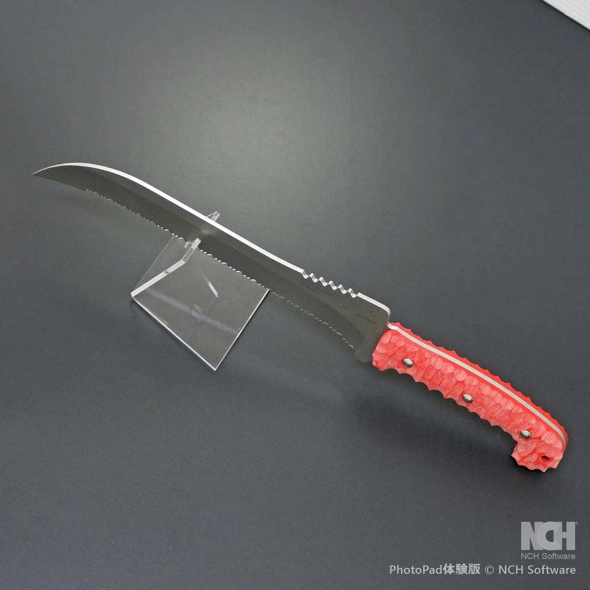 全長 370mm 刃長 24mm 刃厚 3mm 重さ 260g 鋼材 ローカーボンステンレス(HRC:56-58)柄材 G10(種別)固定刃(fixed blade)シース グラスファイバー強化ナイロン