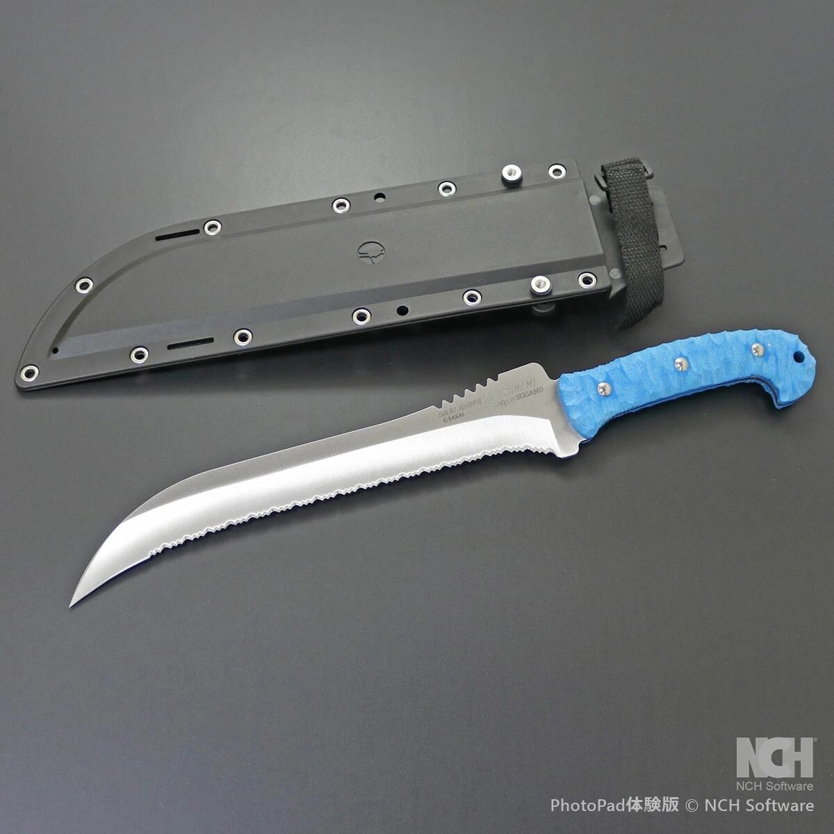 全長 370mm 刃長 24mm 刃厚 3mm 重さ 260g 鋼材 ローカーボンステンレス(HRC:56-58)柄材 G10(種別)固定刃(fixed blade)シース グラスファイバー強化ナイロン