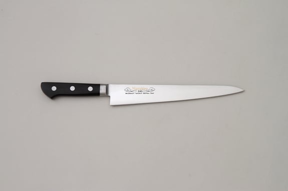 手に伝わる重量感はプロの感覚そのままに、実用性を重視した本職用牛刀です。