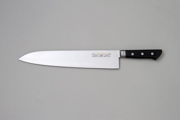 手に伝わる重量感はプロの感覚そのままに、実用性を重視した本職用牛刀です。