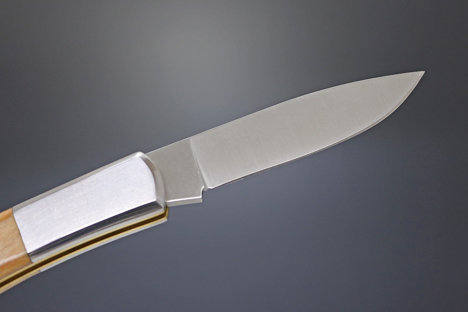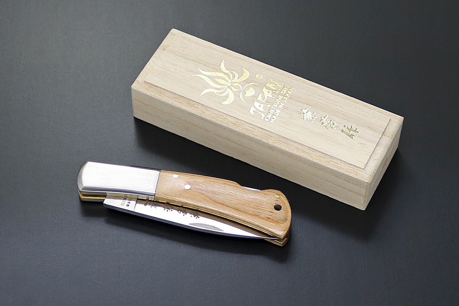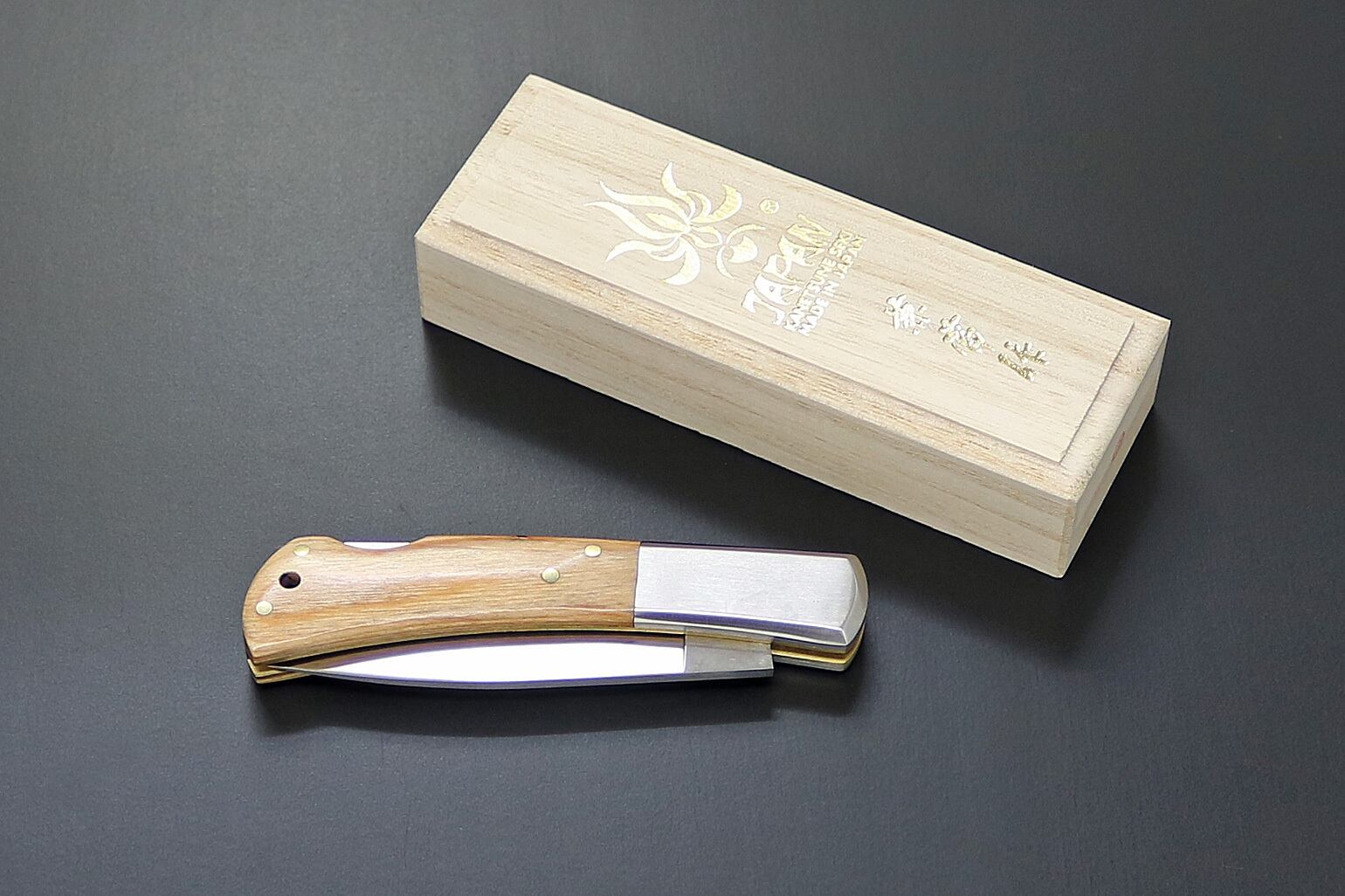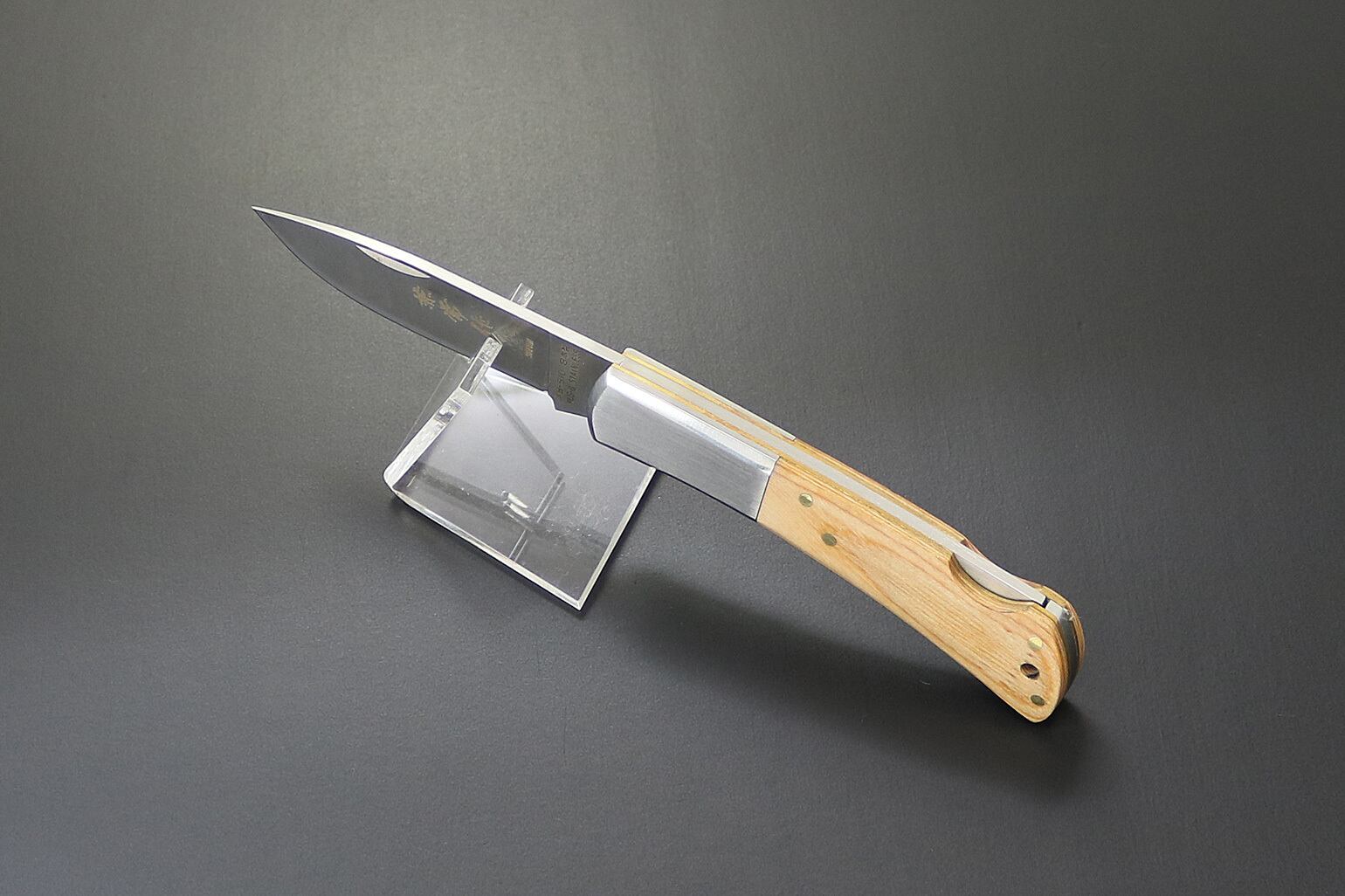 高度経済成長期、「刃物のまち」岐阜県関市の町工場では、世界の有名ブランドのナイフを模して作ったナイフを海外に向けて量産していました。「世界に追いつけ、追い越せ」の気風で多くの関の町工場が勢力的にナイフを生産していた時代。中には世界の有名ブランドのOEMナイフを請け負い、世界で記録的大ヒットしたナイフを製造した工場もありました。当時は日本でもナイフブームに乗って多くの人が国産ナイフを所有していた時代がありました。今では関市でもナイフを生産するメーカーはごくわずか。当時は「背止め一刀」と言われていたフォールディングナイフの代表的なスタイル。古き良き時代の当時のつくり方を変えることなく、熟練職人が直向きに仕上げたナイフ。今この時代だからこそ、その価値が増していると言えます。
