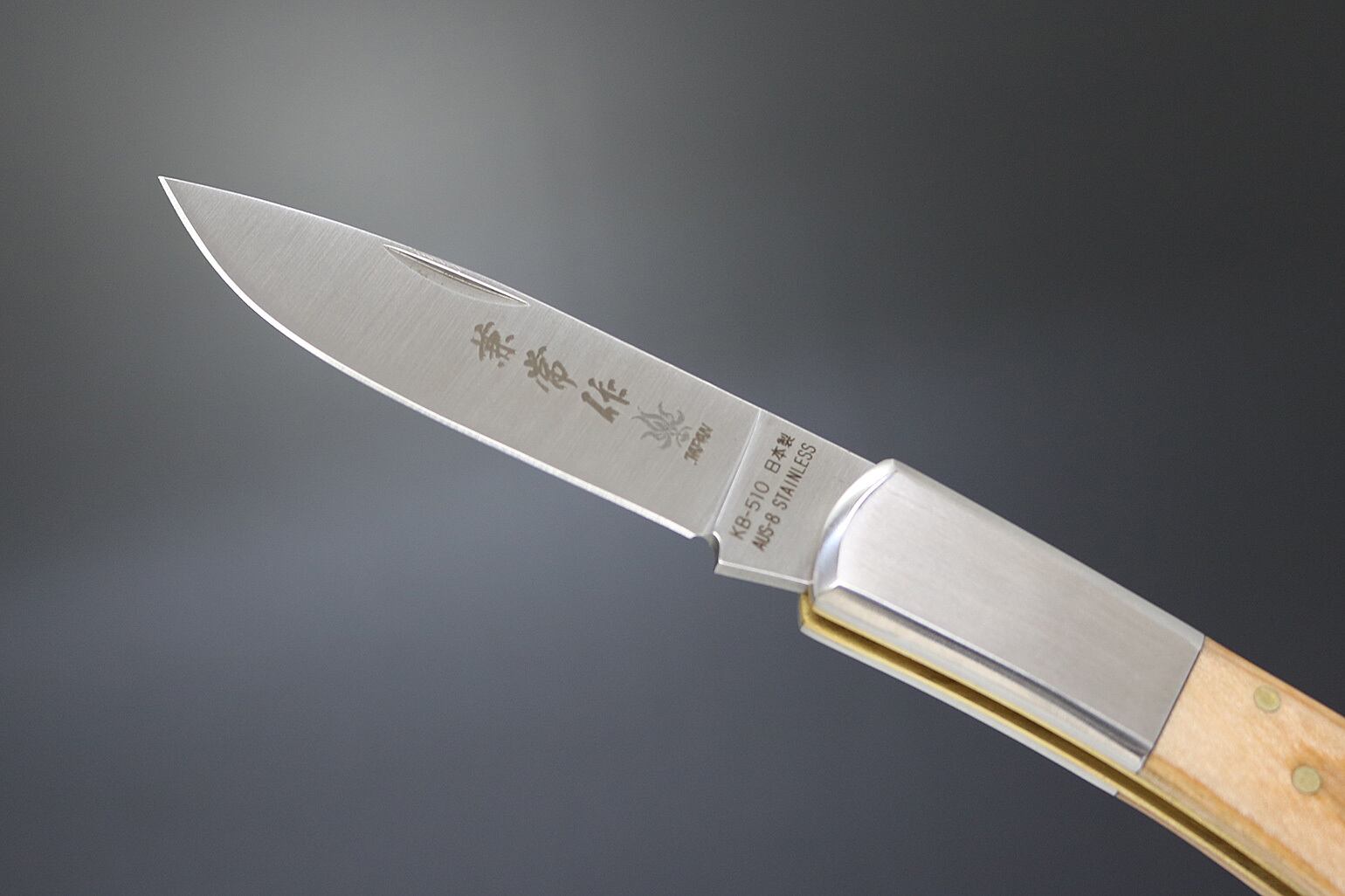 30年以上前から販売されていたこのモデルを関兼常のプロデュースによりアップグレードし2022年5月に発売開始されたモデルです。そのKB-509がご好評であったため、ハンドルカラーのバリエーションを増やして発売されたのが「KB-511(黒)」と本品「KB-510(白茶)」です。3種ともそれぞれの面持ちがあり、3本とも収集したくなってしまいます。