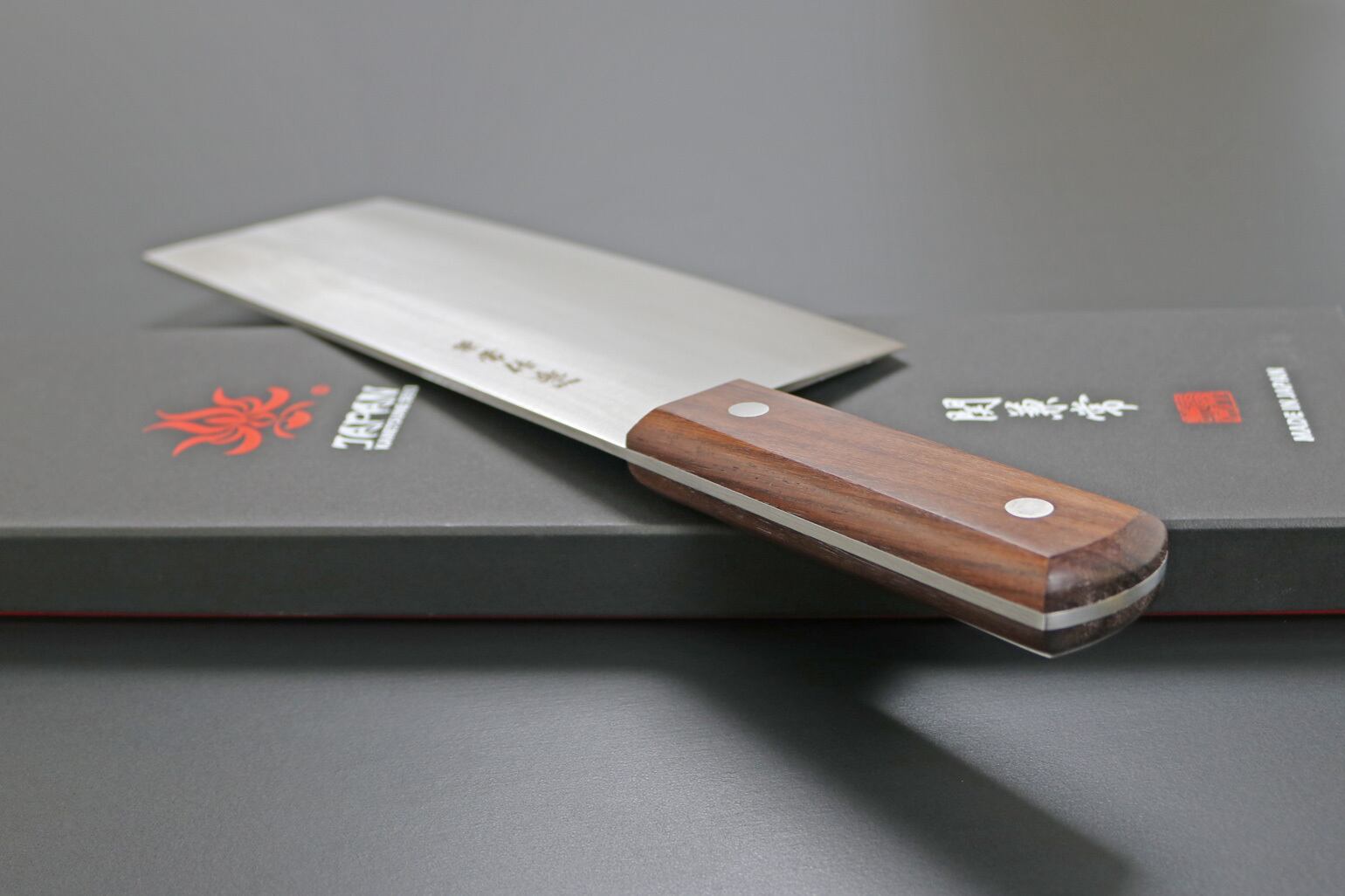 はがねの鋭い切れ味、程よい重量感の本格中華包丁。「刃物のまち」岐阜県関市製。