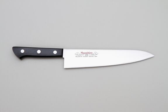 MV黒合板牛刀シリーズは、錆に強く、切れ味の持続性に優れた当社オリジナルのステンレス鋼 (MBS-26)を使用しました。