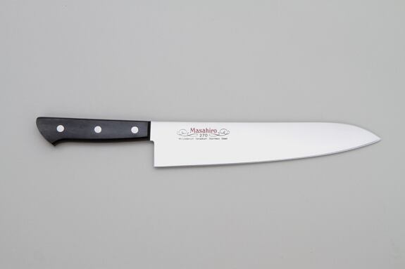 MV黒合板牛刀シリーズは、錆に強く、切れ味の持続性に優れた当社オリジナルのステンレス鋼 (MBS-26)を使用しました。
