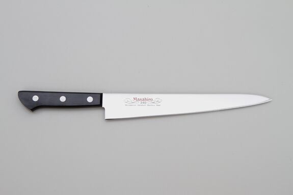 MV黒合板牛刀シリーズは、錆に強く、切れ味の持続性に優れた当社オリジナルのステンレス鋼 (MBS-26)を使用しました。