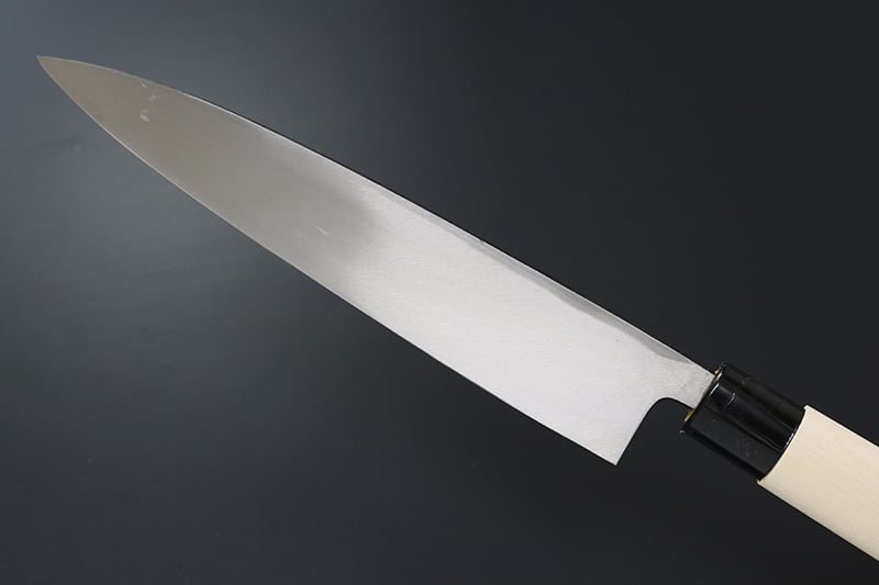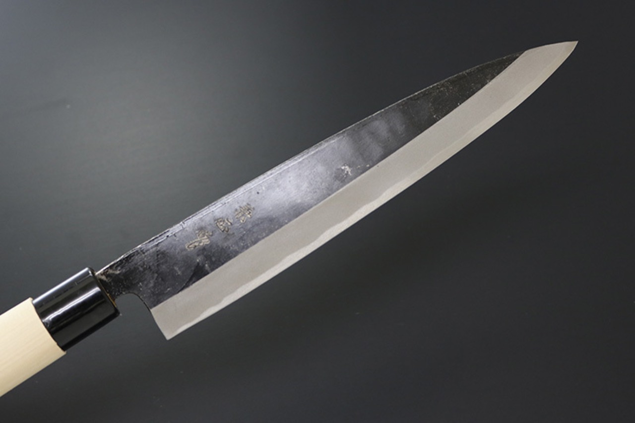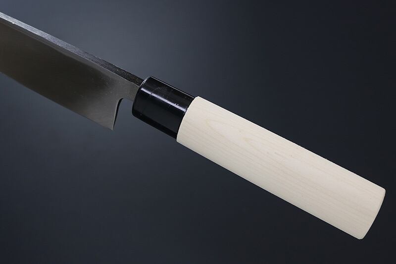 昔ながらの製造法で熟練の職人さんがつくっている包丁です。新品でも多少の擦り傷など仕上げが粗い部分もある包丁ですので、気になさる方はご購入はご遠慮ください。