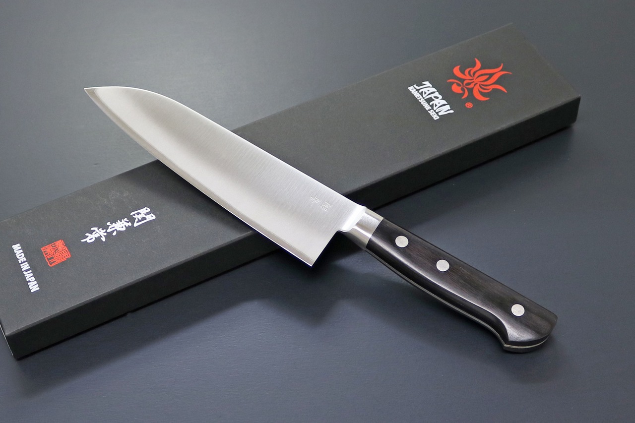 KC-123 関兼常作 青鋼シリーズ 本割込 口金付黒合板柄 三徳 165mm 包丁 研ぎ方 シェフナイフ 洗い方 家庭用 安全
