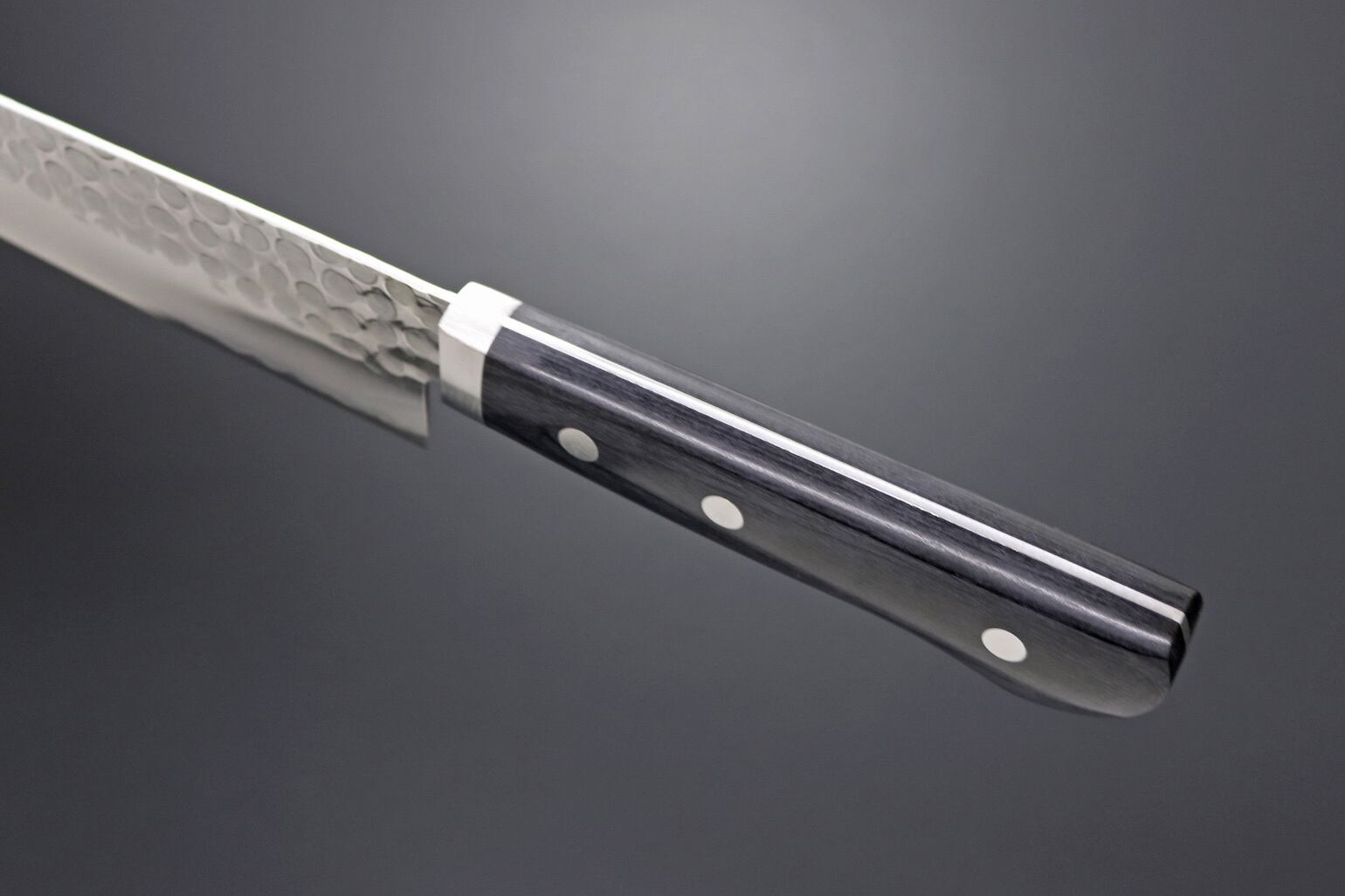 鎚目磨きは風合いが美しいだけでなく、食材がブレード面にくっつきにくいこともあり、切れ味を助長し切離れよく快適にカットできます。