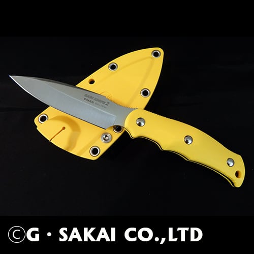 刃は強靭で切れ味鋭く、刃持ちも抜群です。その他ネジなどに使用している素材もすべて18-8ステンレス材を使用していますので錆びに非常に強いです(ブレード材よりは錆びに弱いです)。刃形状はガットフック付と無の2種類。ハンドル材は軽くて丈夫、しかも汚れも取れやすいFRN(ガラス繊維強化ナイロン)。サビナイフ2はいつもきれいな包丁で料理ができしかも大変衛生的です。海、山キャンプ、釣りはもとより、家庭でもお使い頂けます。ケースは軽くて衝撃に強いグラスファイバー強化ナイロン製。